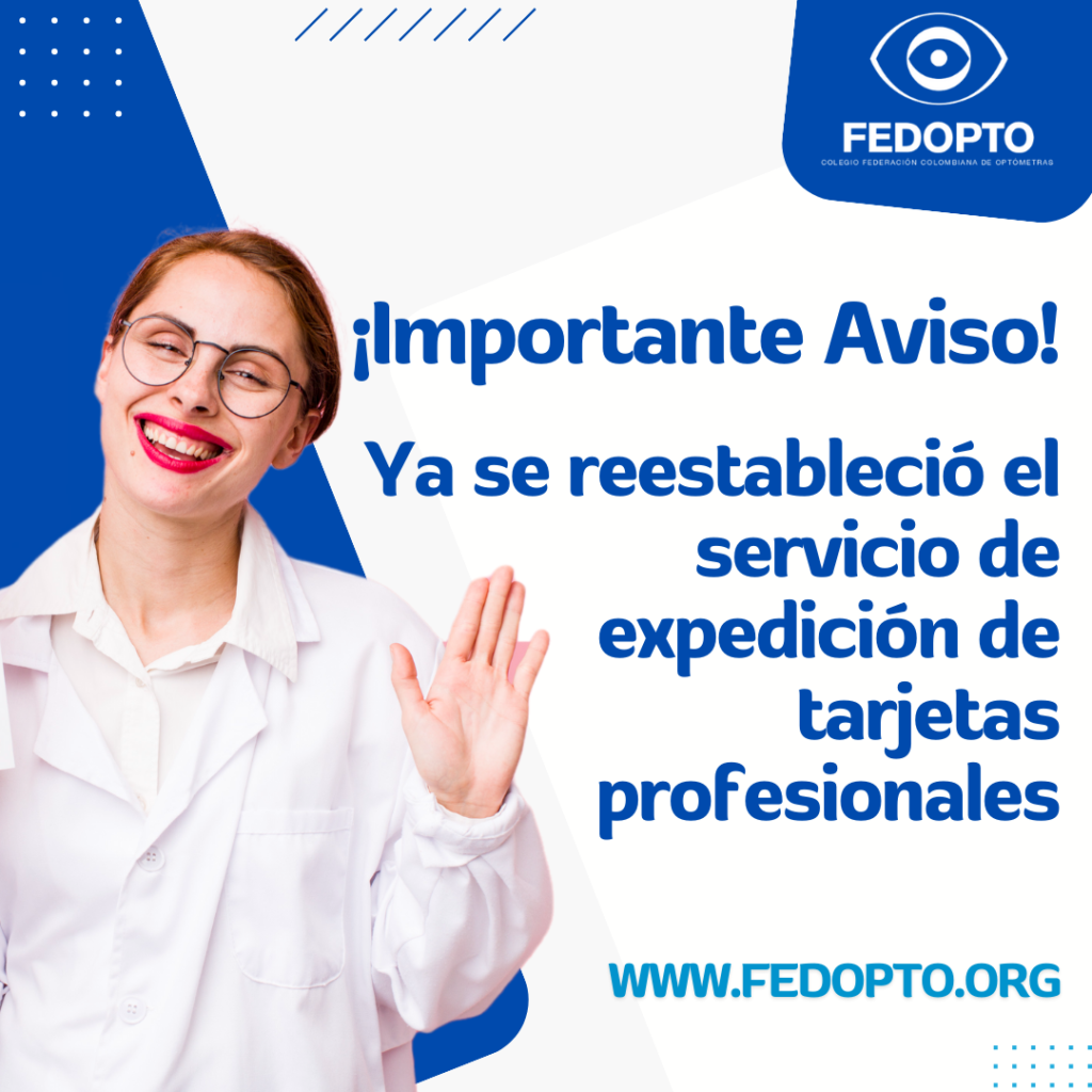 Todos aquellos profesionales en Optometría egresados de una Institución de Educación Superior Colombiana que no hayan realizado su registro o resolución de autorización del ejercicio profesional con anterioridad ante ninguna Entidad Territorial deberán tramitar ante el COLEGIO FEDERACIÓN COLOMBIANA DE OPTÓMETRAS la solicitud de expedición de la tarjeta profesional Nacional, quienes lo inscribirán ante el Registro Único de Talento Humano en Salud – RETHUS, si cumple con lo requisitos solicitados.