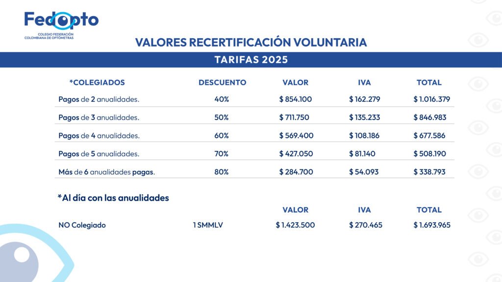 La recertificación es una herramienta clave para garantizar la calidad, actualización y excelencia continua de los profesionales de la salud visual en Colombia.